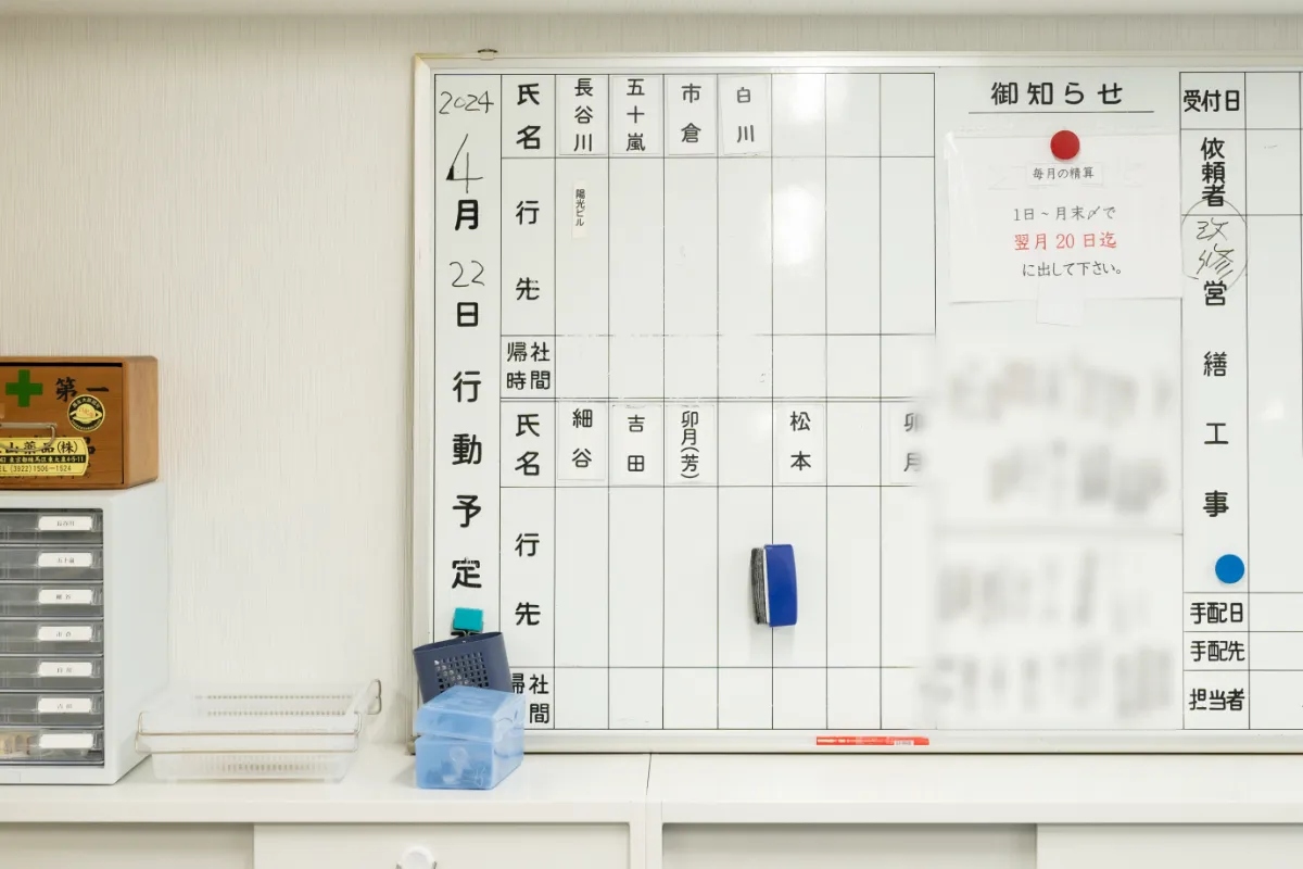 社員全員が案件を一覧で見れたり、共通の予定表が見れるのが良いですね。これを見れば、いつ誰がどの現場にいるのか一目でわかるようになり、誰が忙しくて大変なのかなど、社員の業務状況もみんなで把握できるようになったので、フォローしやすくなりました。
